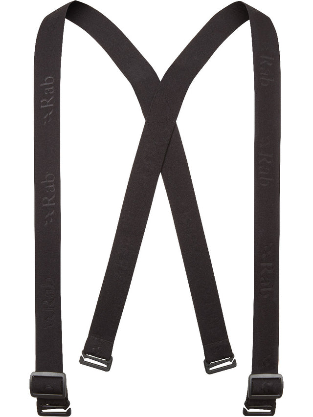 Rab Braces use a soft elasticated webbing to ensure day long comfort and support. Each of the four attachment points use opening plastic clips that are quickly attached to the Rab Spire Pants or the Rab (men's and women's) Vapour-rise Guide Pants.