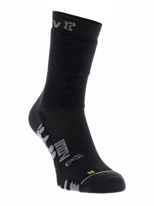 The Inov8 Thermo Outdoor Sock High is a Merino running sock that will provide warmth along with excellent breathability in cold conditions. With it's high cut, well above the ankle, it is a good choice for colder conditions where some leg protection is required too.