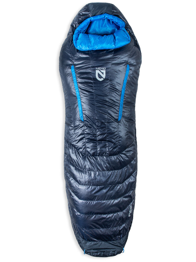 The Nemo Riff 30 is a lightweight and packable 800FP down sleeping bag. Aimed at those looking for lightweight kit, but with features and a shape that makes the Riff one of the most comfortable and unrestrictive sleeping bags out there. The Riff is made with 100% Recycled Polyester Ripstop with DWR, with the hood and foot box reinforced with waterproof material to prevent tent condensation from soaking into the bag's fabric. The Ultralight Spoon shape adds room at elbows and knees for versatile comfort, making the Riff a great bag for side sleepers.