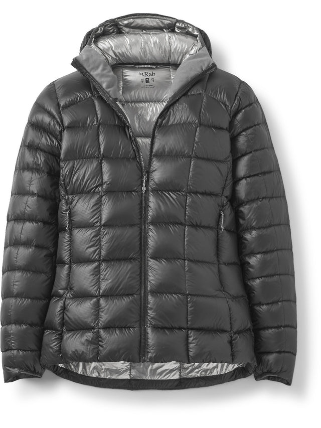 The Rab Women's Mythic G Jacket is an innovative, ultralight, ultra warm 1000FP Down insulated jacket that pushes the boundaries of warmth to weight at just 277g (Size Medium). The Mythic G Jacket features a range of cutting edge technologies; 1000FP European Goose Down is some of the lightest and best lofting down on the market. This allows for maximum warmth and minimum weight and pack size. Rab's TILT heat reflective fabric treatment in the lining reflects your own body heat, which substantially reduces radiant heat loss. The 7 denier Atmos nylon ripstop is ultralight and treated with moisture resistant fluorocarbon-free DWR. This ultralight outer keeps the weight down but is not the most durable in the world so care should be taken around abrasive surfaces.