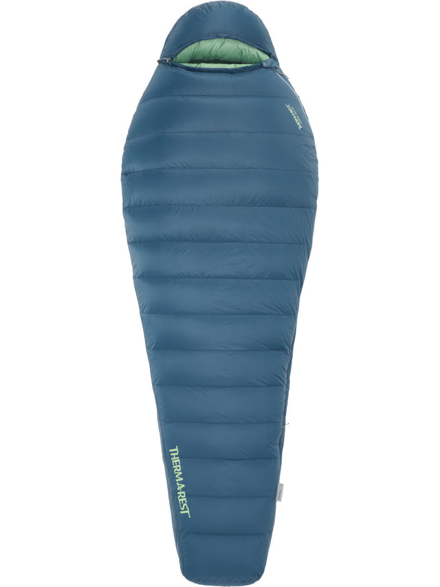 Construction quality is paramount, featuring premium 900-fill Hydrophobic Down that remains loftier and drier for longer in damp conditions. This RDS-certified, PFAS-free insulation ensures ethical sourcing while providing exceptional warmth-to-weight ratios for any down sleeping bag. The exterior is crafted from 100% recycled 20D Nylon Ripstop, offering a soft yet durable finish that is kinder to the planet. By utilizing these high-grade recycled shell and liner fabrics, Thermarest has created a resilient, eco-friendly sleeping system that compresses significantly, making it ideal for space-conscious hikers and mountaineers.