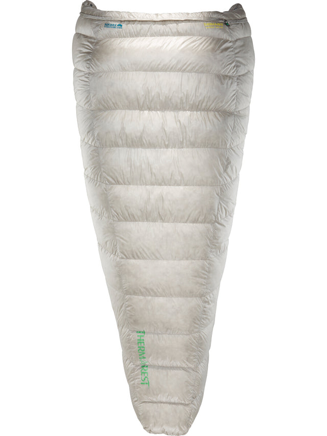 The Thermarest Vesper Quilts are super light alternatives to a full sleeping bag for those on multiday backpacking missions who want the absolute smallest pack size. Insulated with high loft and compressible 900FP Goose Down and constructed from ultralight materials the Vesper quilt weighs just 550g (regular) and will pack down to the size of a 1L Nalgene bottle. The Vesper quilt is designed to keep you warm in temperatures down to -6. Please be aware that his is Thermarest's own rating as quilts cannot be tested in the same way as the standardised EN rating for sleeping bags. The perormance of the bag is very much dependant on the quality of your sleeping mat.