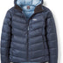 Mid weight down jacket made with recycled down and recycled fabrics. 390g