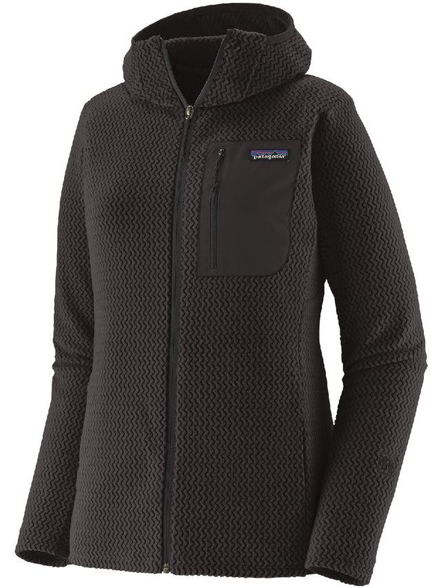 The Patagonia Women's R1 Air Full Zip Hoody is a lightweight, breathable and quick-drying technical fleece for high-exertion activities in cold conditions. Extremely light and packable, the R1 Air fleece uses hollow core yarns and a lofted zig-zag texture to trap air, move moisture and breathe for exceptional warmth without weight during high-exertion, non-stop activities in cold conditions. Made from 100% recycled polyester with hollow-core construction, R1 Air has a clean, athletic design for easy layering and a Z-structure inside and out that dissipates moisture quickly for fast drying, highly breathable warmth. Light, airy and minimally designed, it feels soft on the skin and can be worn as a stand-alone top when conditions permit.