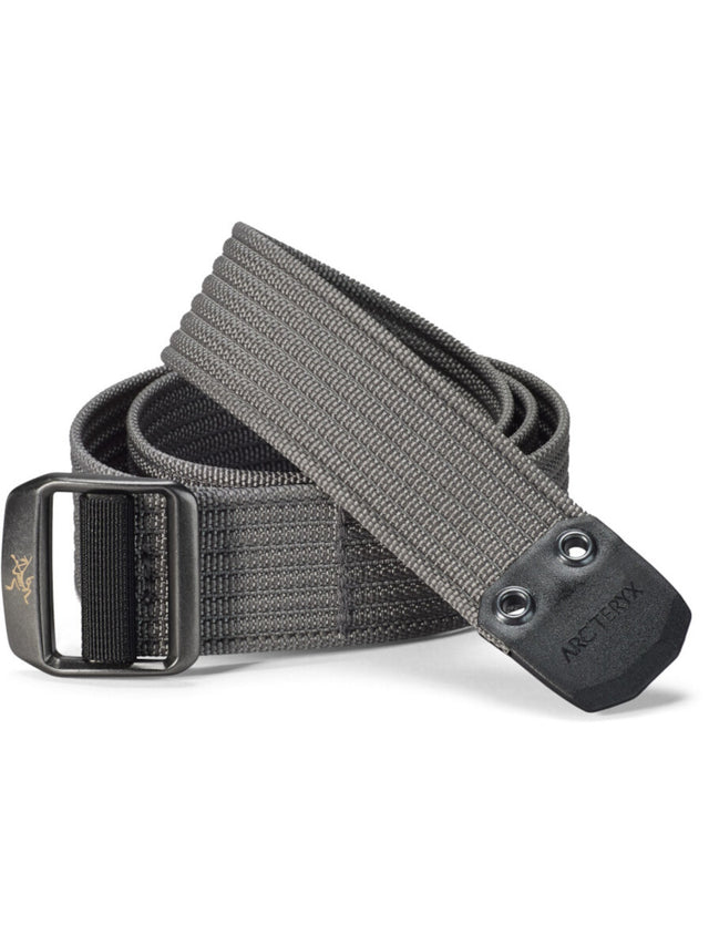 The Arcteryx Conveyor Belt is a textured nylon webbing belt. It features a hard wearing metal plate end and a metal friction buckle,styled on the buckles found on Arcteryx's climbing harnesses.