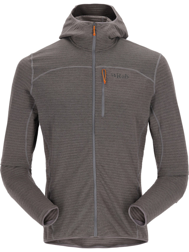 The Rab Ascendor Light Hoody is a high wicking, lightweight, technical, mid-layer that can be ulitized for numerous activities. Constructed from Thermic S stretch fleece, offering you light, warm, fast drying and durable warmth. The inner side of the fleece features alternating stripes of high and low lofting fleece for warmth in low bulk package with increased air flow. The outer fabric has a smooth feel and stretch so it allows an easy glide when you need to layer up, combined with flatlock seams, giving a next to skin comfort.